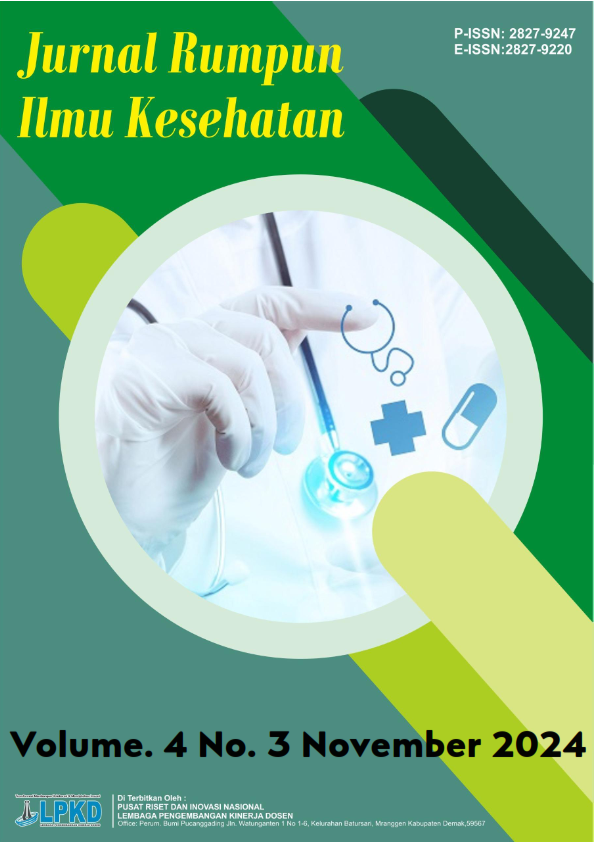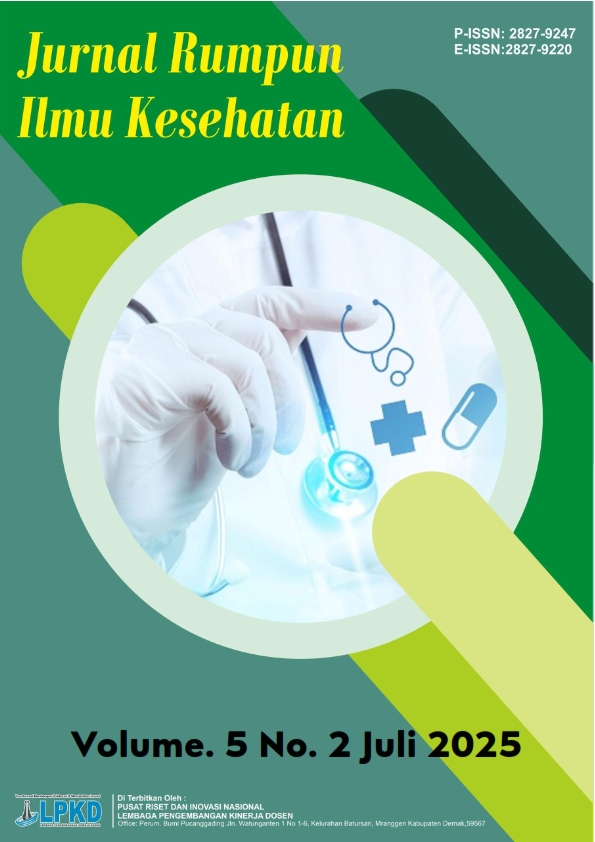 Vol. 5 No. 2 (2025)Jurnal Rumpun Ilmu Kesehatan: ISSN: 2827-9247 (cetak), ISSN: 2827-9220 (online) menerima naskah publikasi dari hasil penelitian yang belum pernah dipublikasikan di tempat lain dalam bentuk cetakan maupun digital (e-journal). Jurnal Rumpun Ilmu Kesehatan mencakup artikel di bidang ilmu kesehatan. Kami menyediakan akses terbuka (open access) bagi para akademisi dan praktisi serta mahasiswa kesehatan yang ingin mendapatkan artikel dalam Jurnal Rumpun Ilmu Kesehatan.